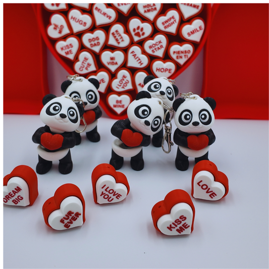 Valentine's Day Gift Accessory Panda Keychain with Heart, Black and White,