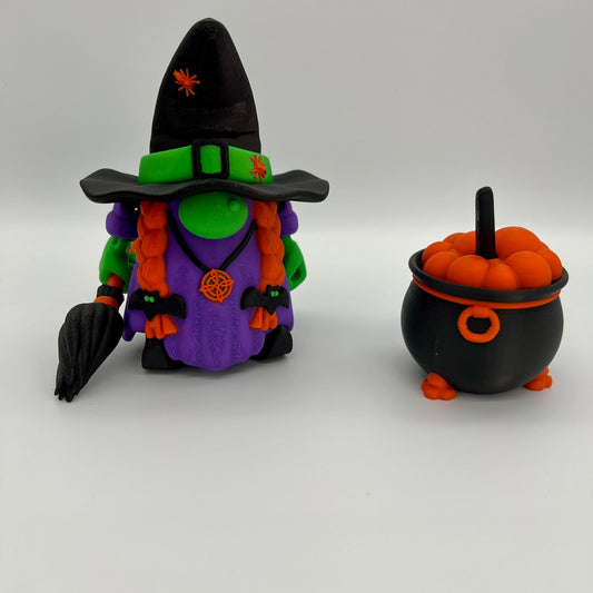 Witch Figurine with Cauldron, Spoon & Broom – Fan Art Collectible