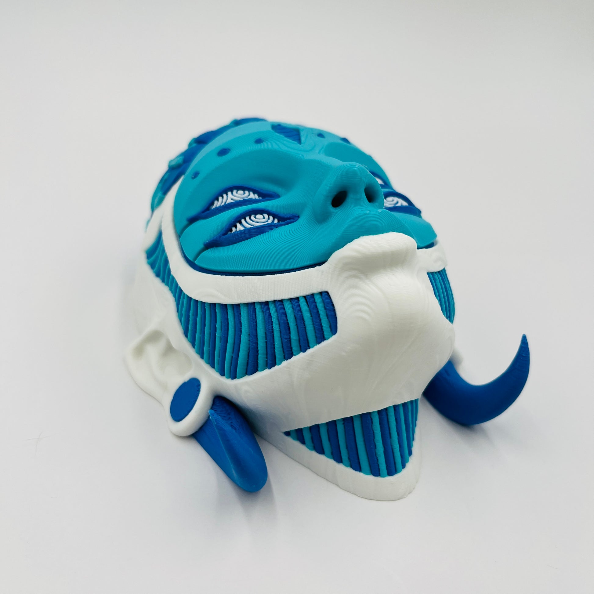 Bring bold color and character to your space with Arlequín—a striking multi-color art mask designed by Pipe Cox. This piece is 3D printed in-house by 3BC Creations for crisp layered details and a smooth, gallery-style finish. Display it your way: mount it as wall art with the included hanger, or set it on the free-standing base for shelf and desk decor.