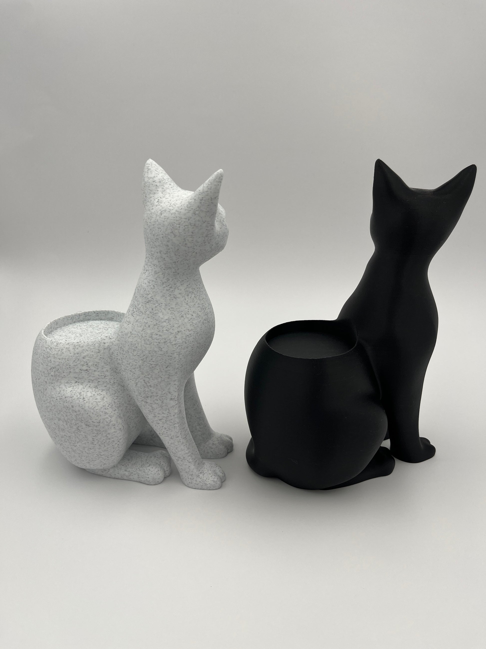 A sleek sitting cat with a recessed tealight well adds a warm, modern glow to shelves, mantels, and nightstands. Printed by 3BC Creations for crisp lines and a smooth finish. Fits most LED tealights (recommended; tealight not included). 3D printed with PLA. Decorative item—not a toy.