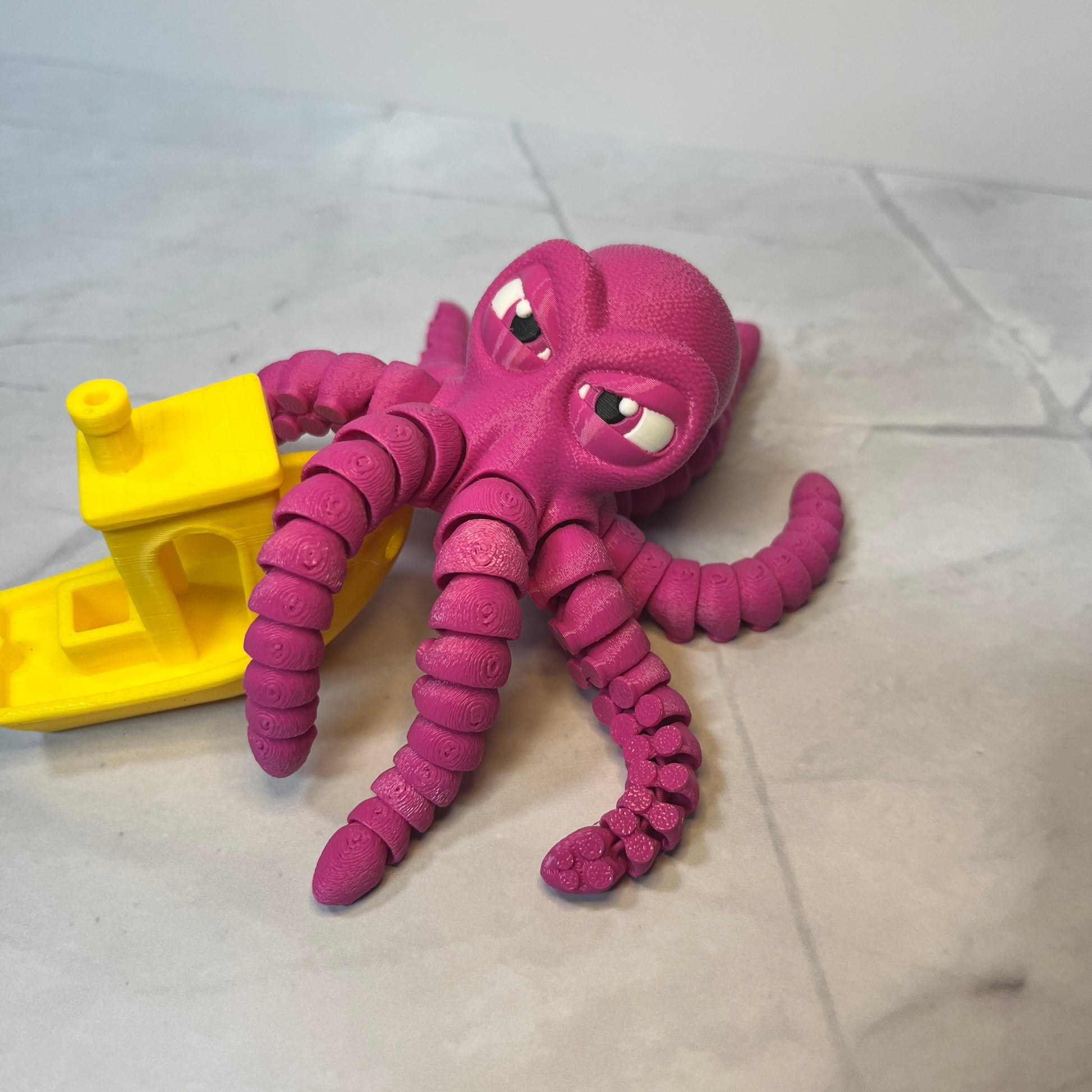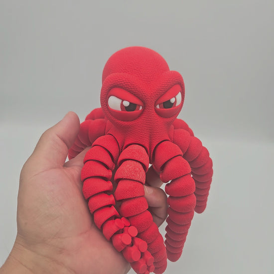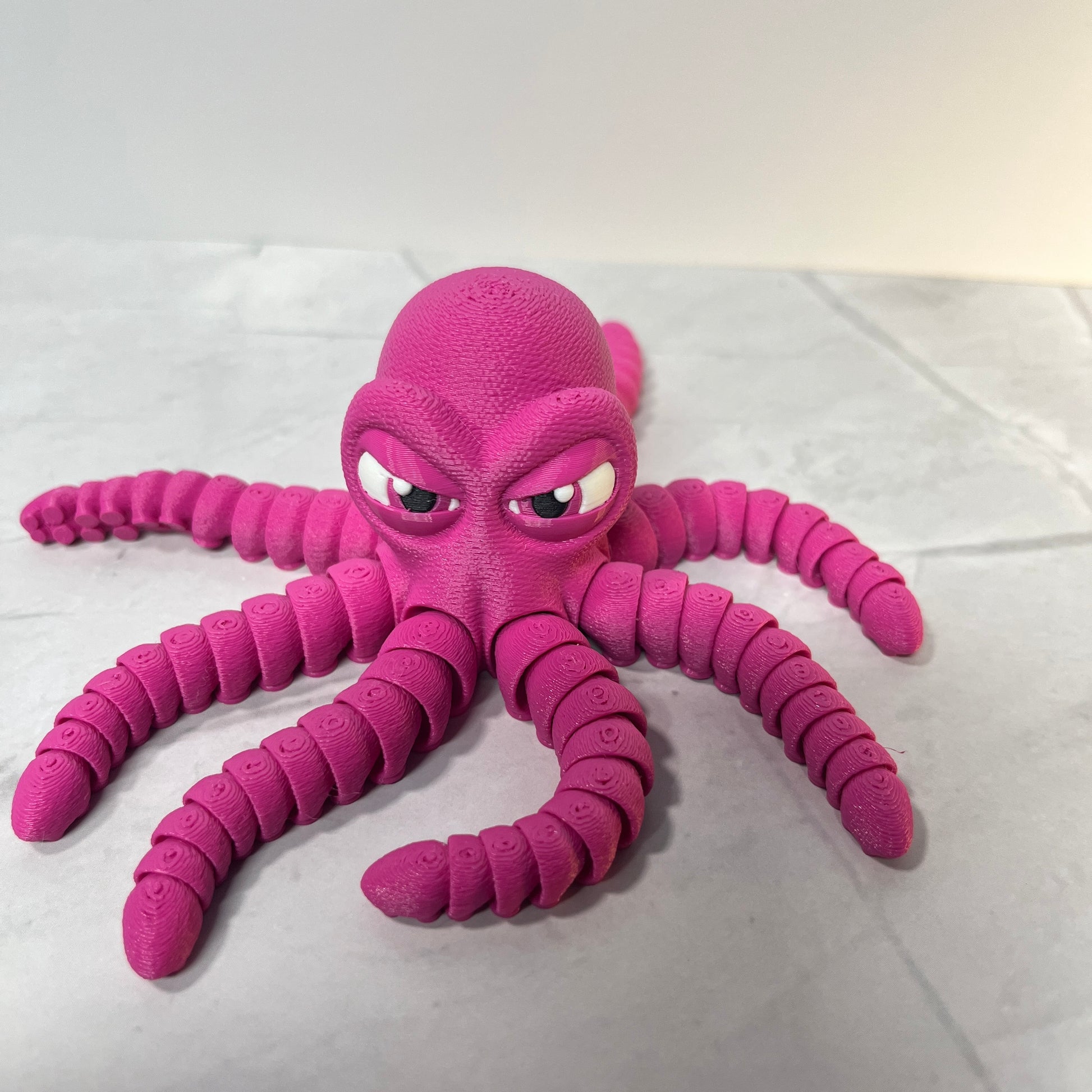Meet the desk guardian with attitude. This Flexi Angry Octopus features expressive eyes and smooth, poseable tentacles that drape naturally over shelves, keyboards, and display stands. Each piece is 3D printed with PLA for crisp texture and satisfying flexibility, then assembled and inspected in-house. Choose Red or Magenta to match your setup, gift list, or TikTok shelf.