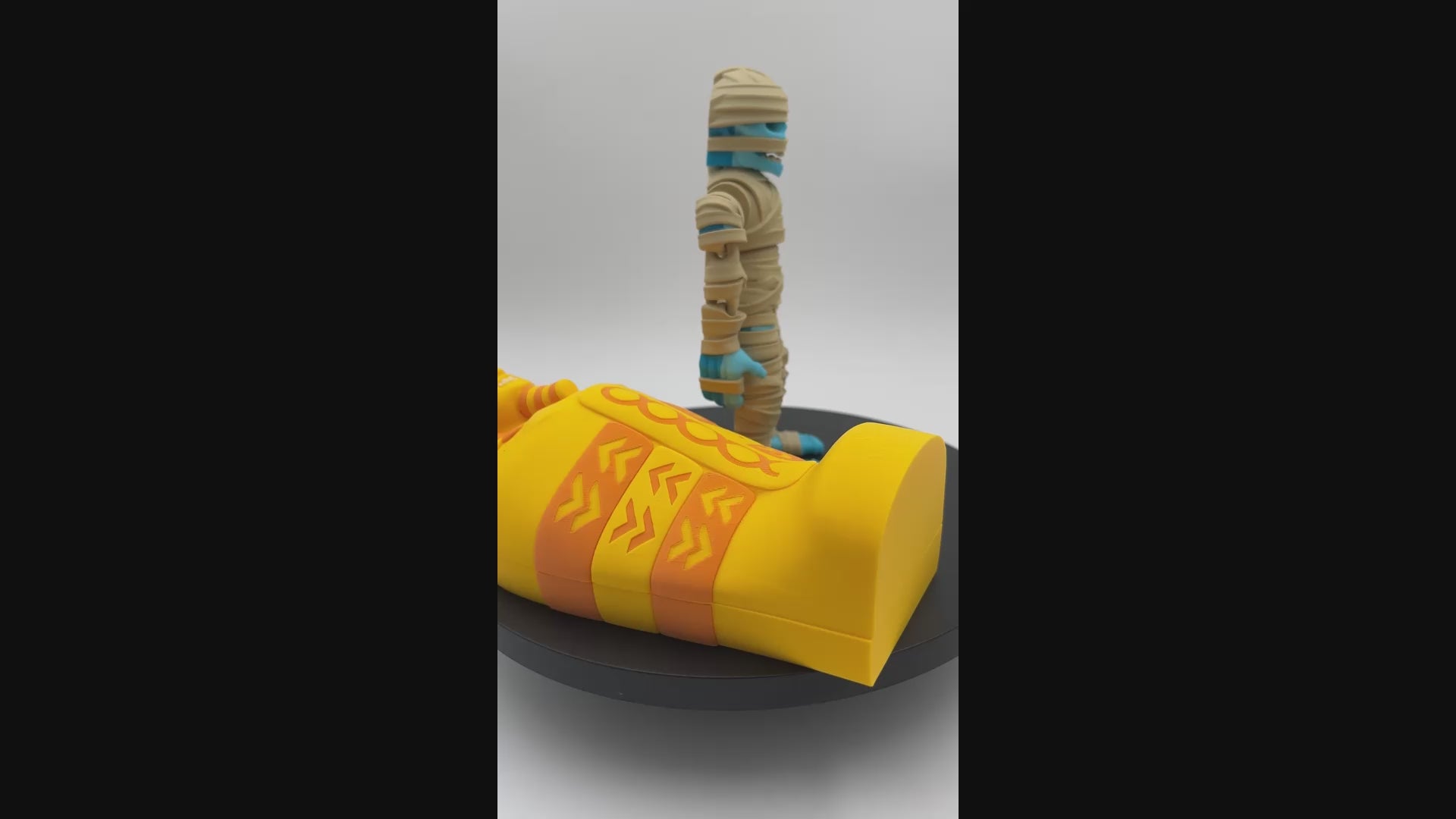 Unwrap some ancient fun with this poseable Flexi Factory Mummy and matching sarcophagus! The articulated “flexi” joints allow you to pose the mummy for display, photography, or seasonal décor. Printed in vibrant colors with detailed bandage textures, the sarcophagus opens so the mummy can rest inside between adventures.