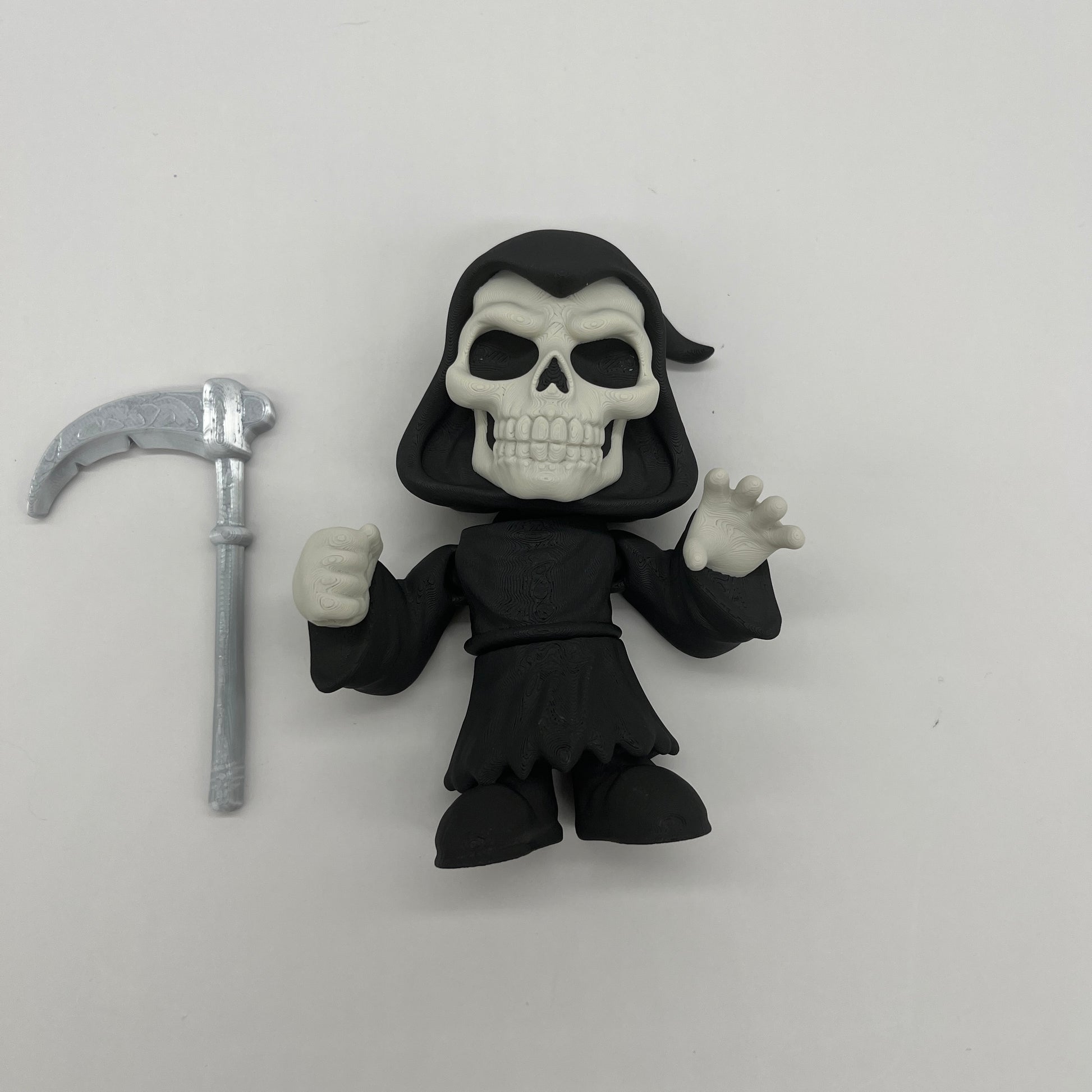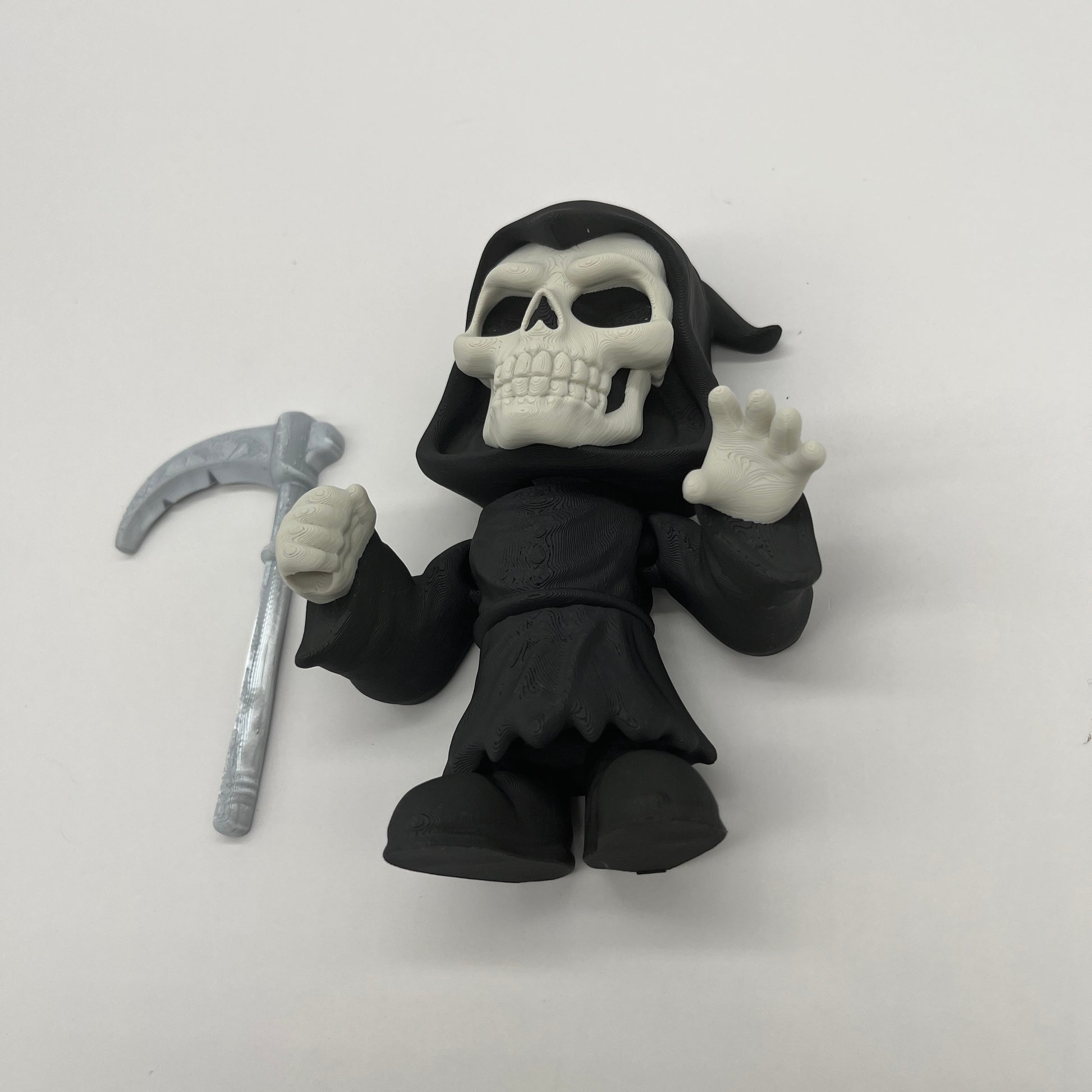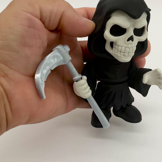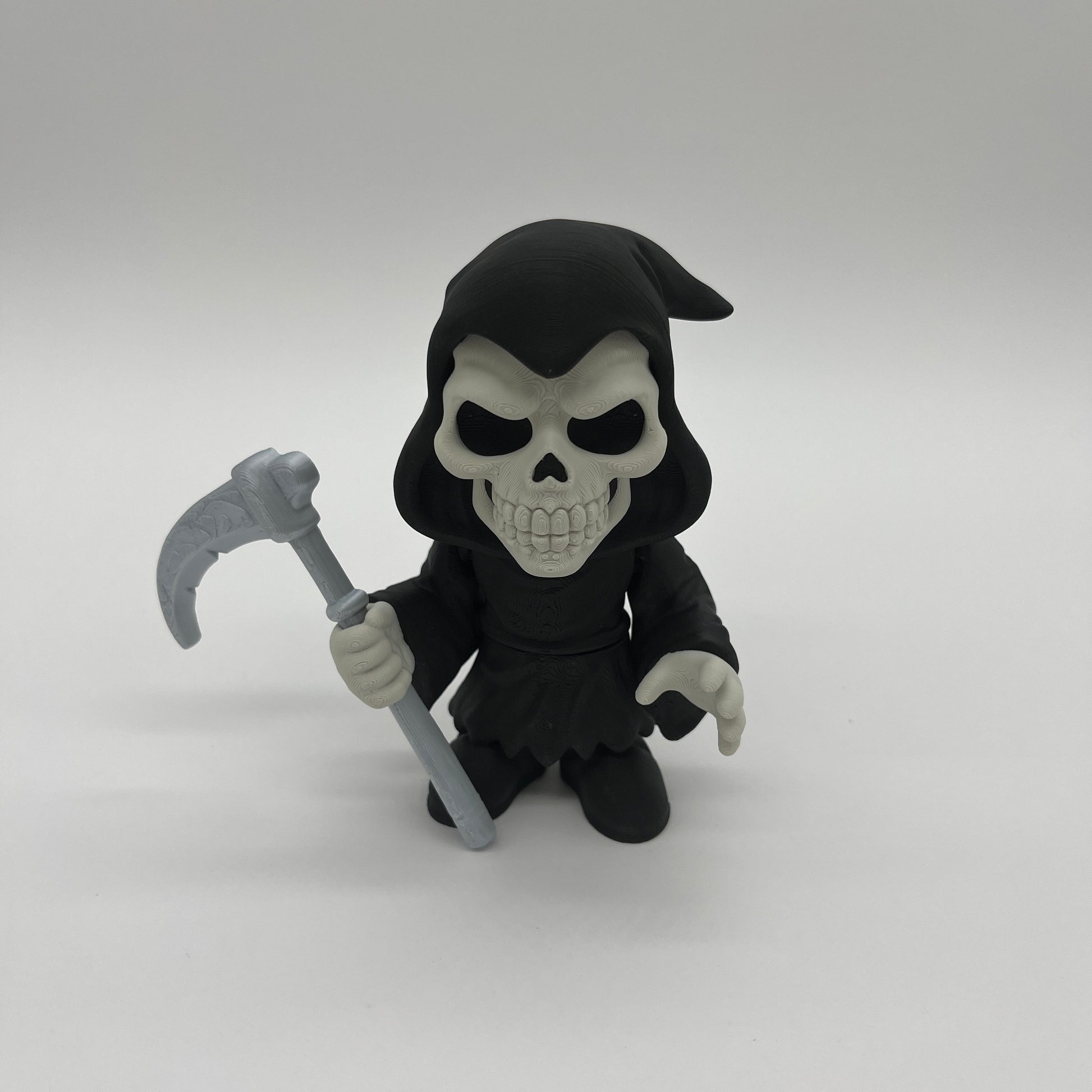 Cue the spooky beat—Grim Reaper brings playful Halloween energy to any shelf or desk. This style reaper holds a detailed scythe and wears a flowing, hooded cloak for maximum attitude in a compact size. Printed by 3BC Creations for crisp texture and a clean matte finish. 3D printed with PLA. Decorative collectible—not a toy.