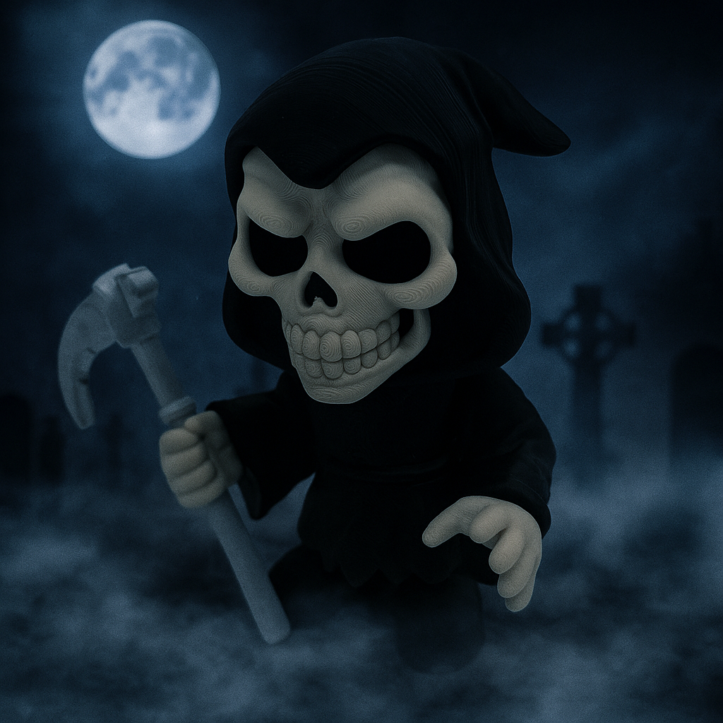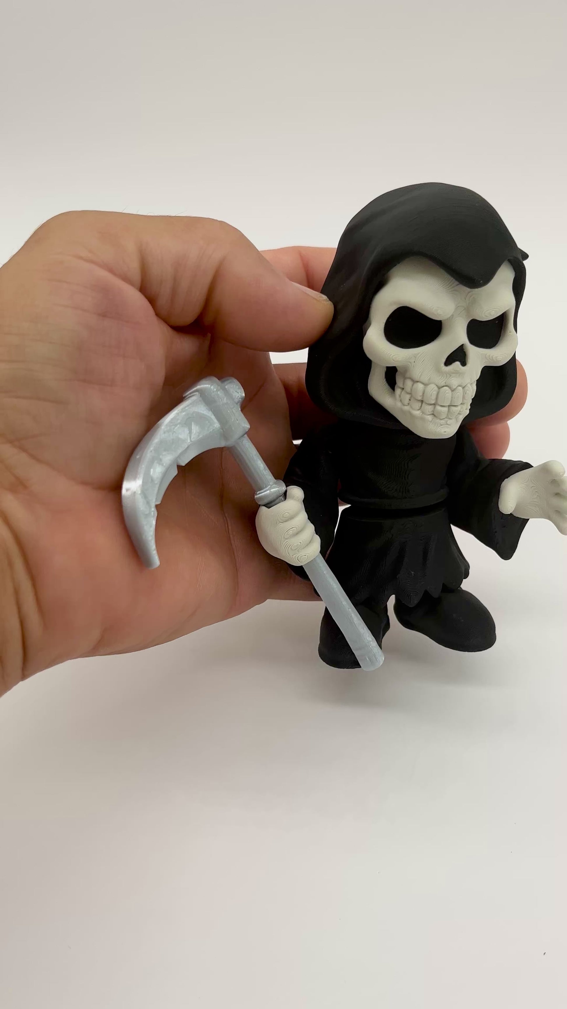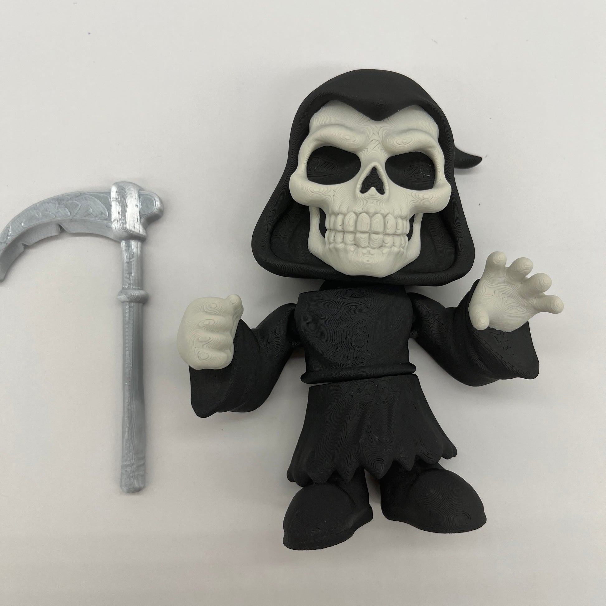 Cue the spooky beat—Grim Reaper brings playful Halloween energy to any shelf or desk. This style reaper holds a detailed scythe and wears a flowing, hooded cloak for maximum attitude in a compact size. Printed by 3BC Creations for crisp texture and a clean matte finish. 3D printed with PLA. Decorative collectible—not a toy.