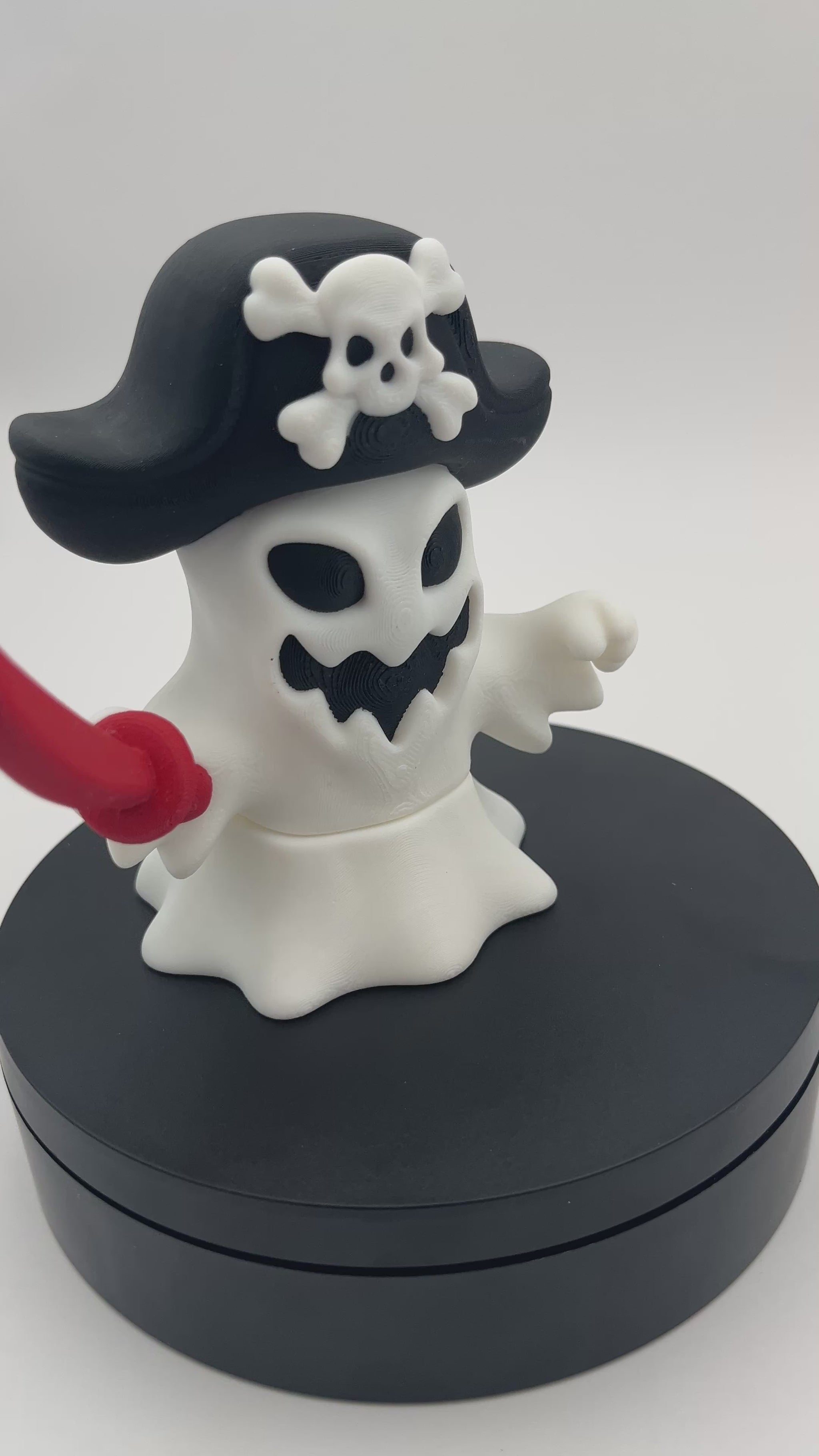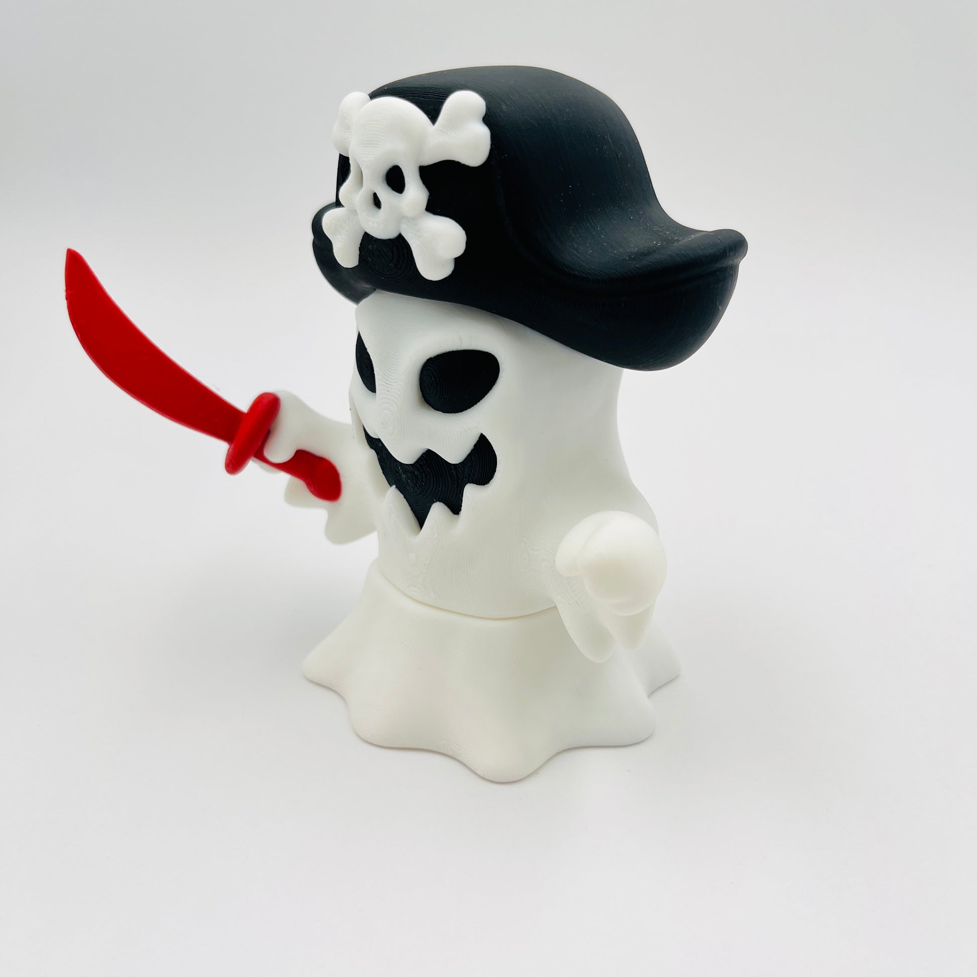 Bring a playful fright to your shelf! This Pirate Ghost figurine features a classic skull-and-crossbones tricorne and a bold red cutlass—perfect for Halloween displays, desks, and gift boxes. Professionally 3D printed by 3BC Creations for crisp details and smooth, matte finishes. Lightweight and sturdy for easy decorating.