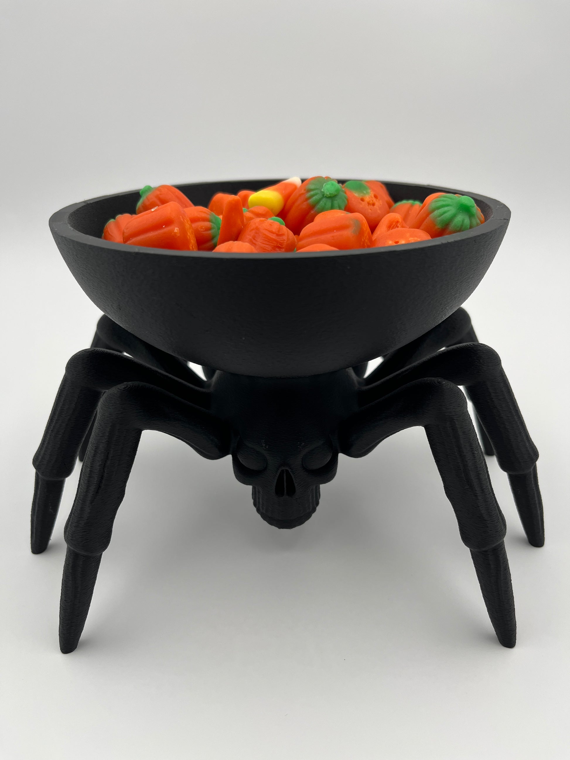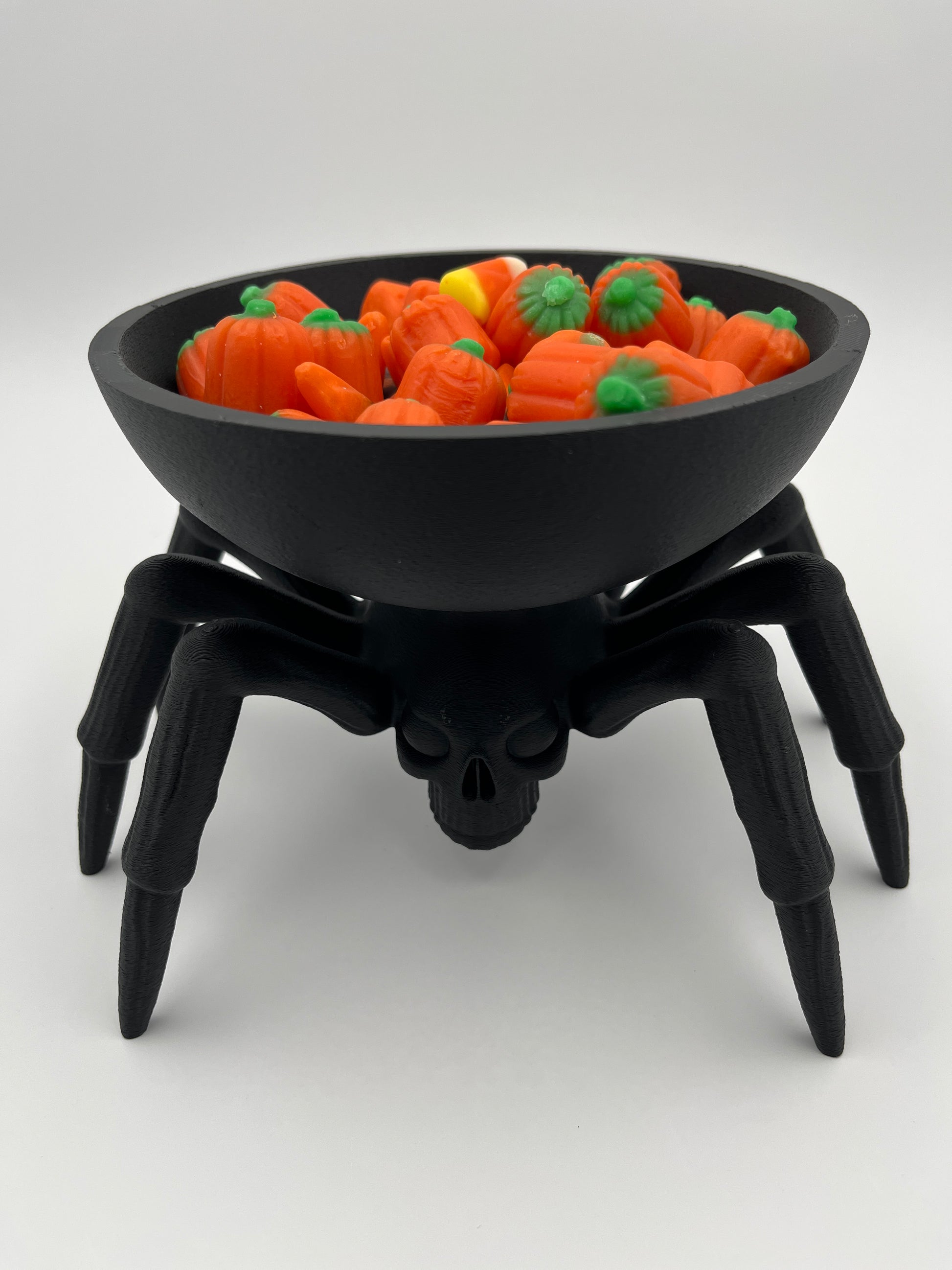 Creep it real with this Spider Candy Bowl—a matte-black dish perched on a skull-backed spider stand. Perfect for wrapped treats on your entry table, desk, or party buffet. Lightweight, sturdy, and reusable every spooky season.